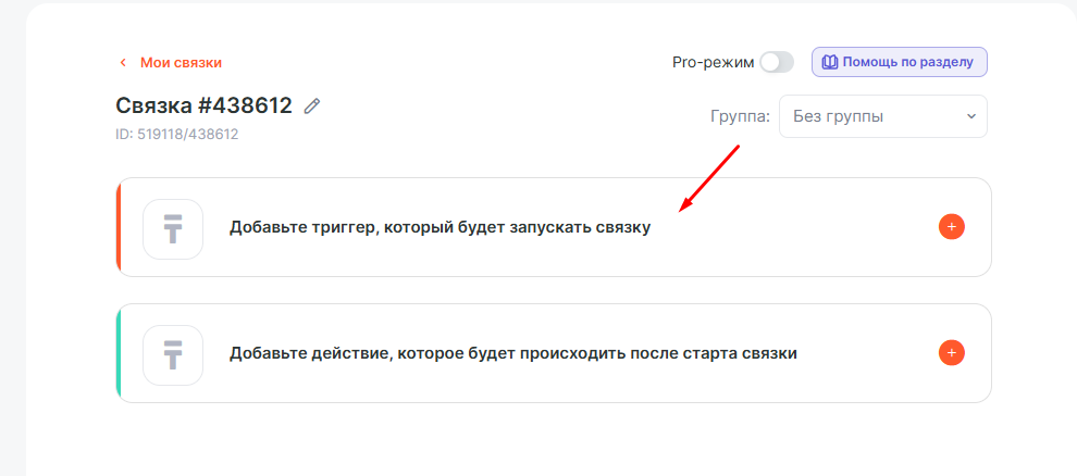 Выбери нужный триггер при создании связки: