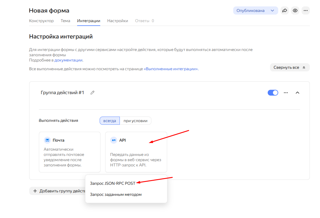 Как настроить интеграцию с Яндекс.Формы