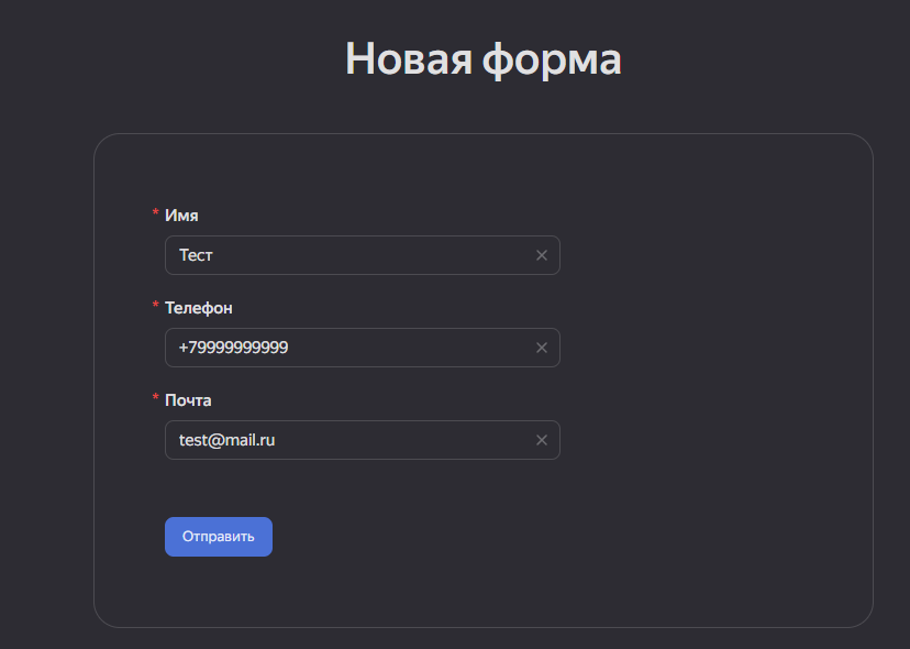 Заполни поля произвольными данными и отправь форму:
