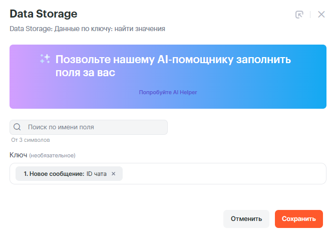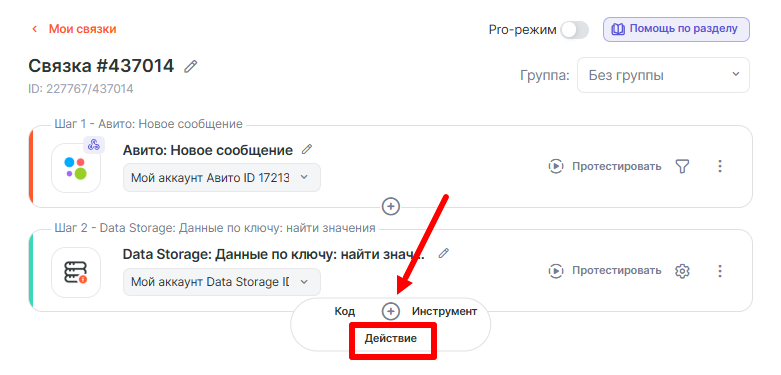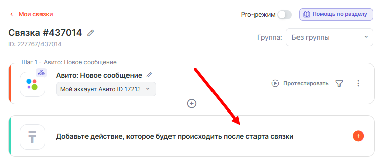 • Ключ: ID чата из Шага 1: Авито