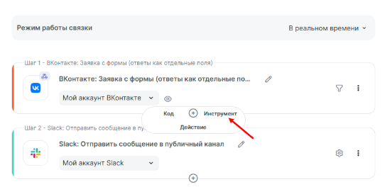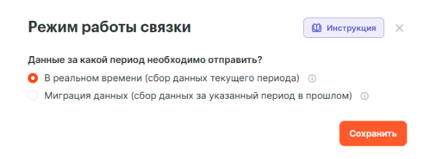 Выберите режим работы связки «В реальном времени» и нажмите «Сохранить».