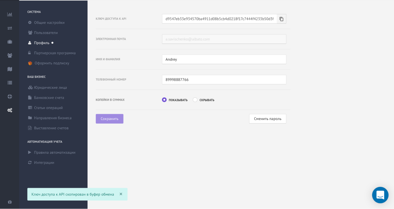 Чтобы получить API-ключ перейди в свой аккаунт Adesk и выбери раздел «Настройки профиля» и скопируй ключ из соответствующего поля.