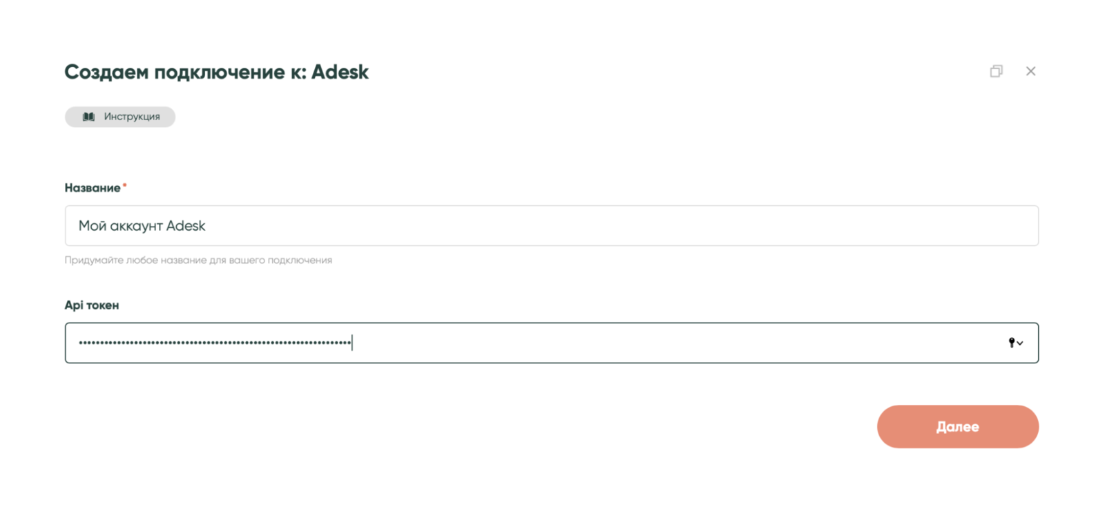 Вернись в Albato и вставь ключ в поле «API токен».