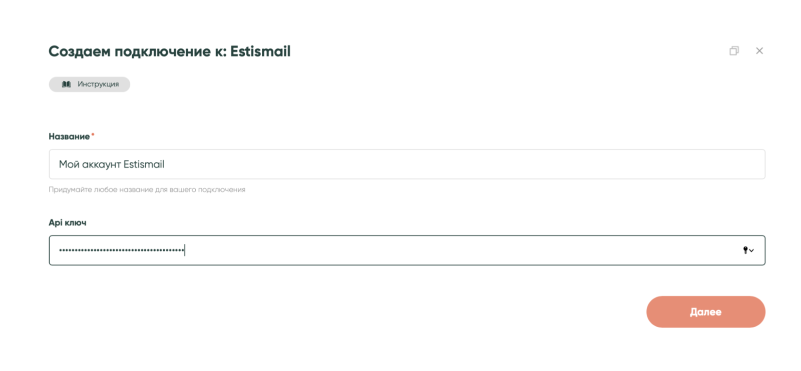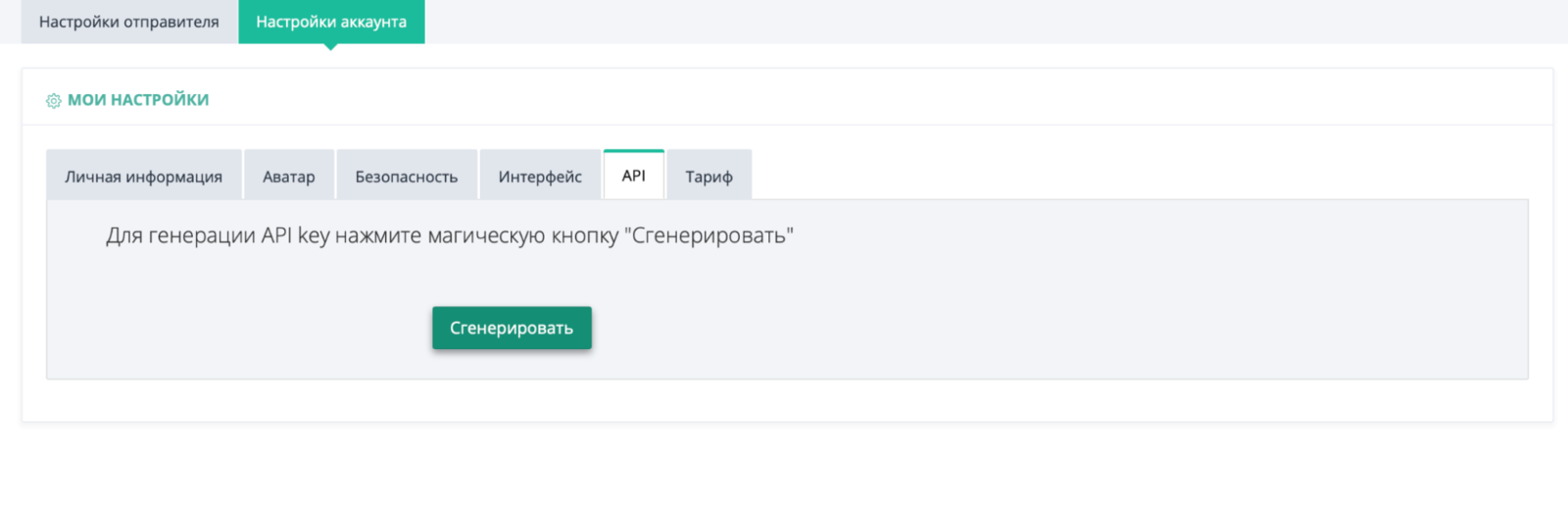 Чтобы получить API-ключ, перейди в свой аккаунт Estismail и выбери раздел «Настройки» → «Настройки аккаунта» → «API». Нажми сгенерировать и скопируй ключ.