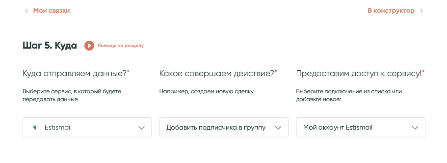 Теперь при получении данных из формы, Albato запустит сценарий, отправит данные лида в Estismail и добавит подписчика в нужную группу.