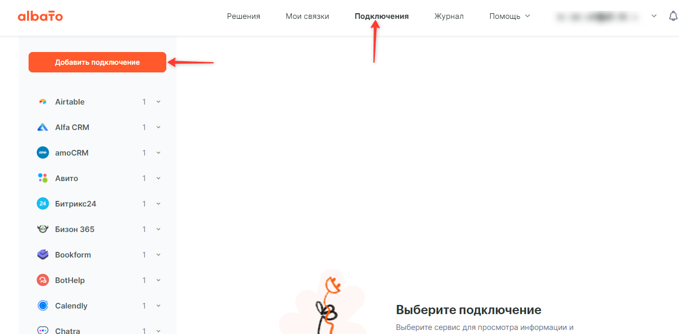 Затем перейдите в ваш кабинет Альбато, Подключения, Добавить подключение