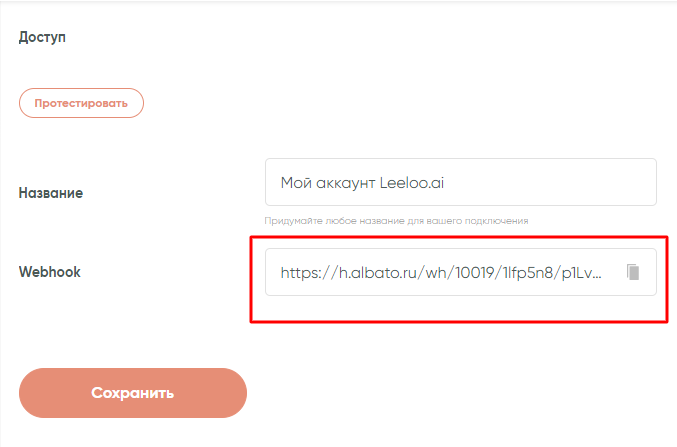 Подключение создано, теперь им можно воспользоваться в любых связках. Следующий шаг состоит в интеграции с Leeloo при помощи вебхука, который мы скопировали ранее.