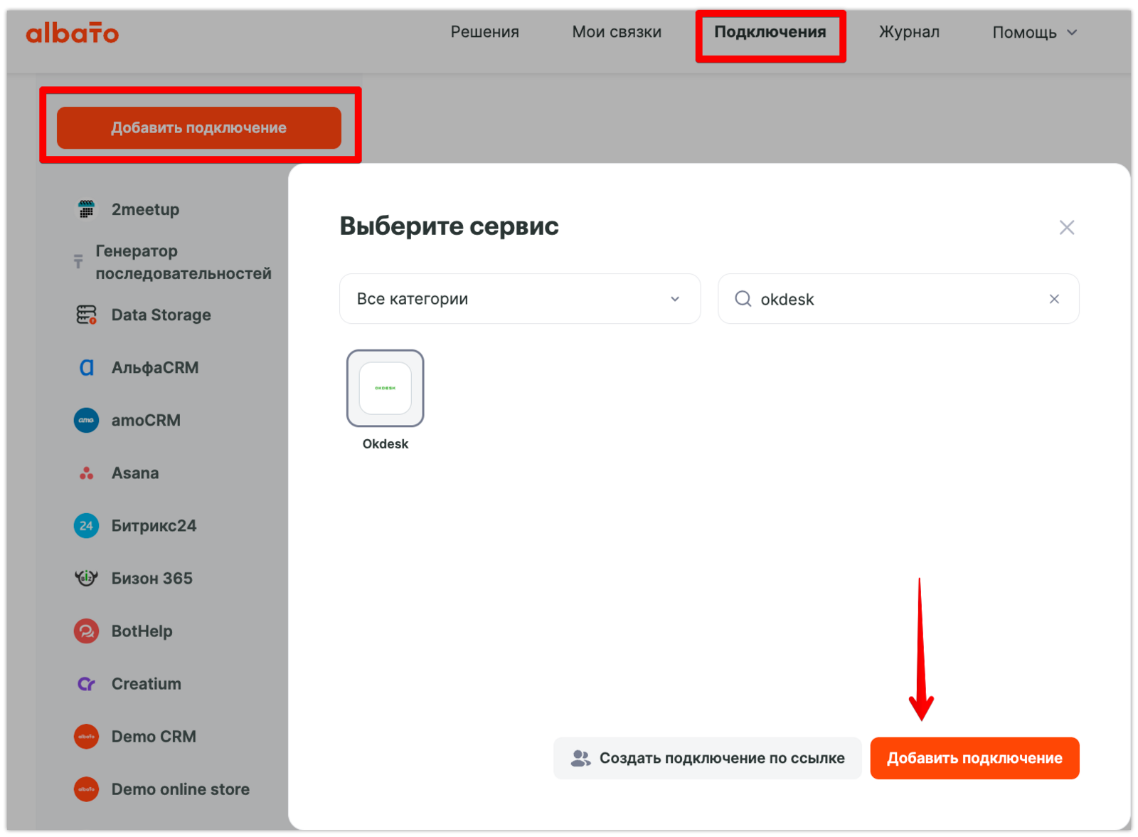 Как подключить Okdesk к Albato