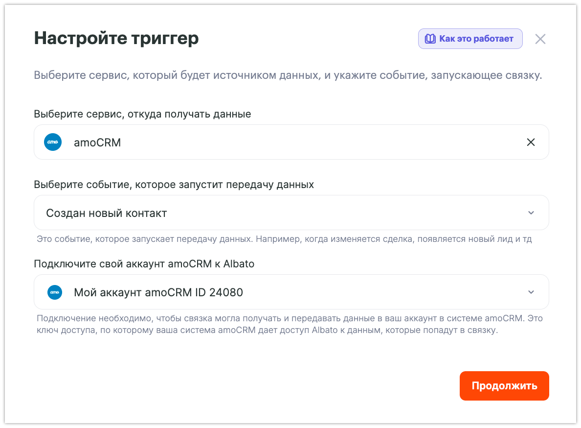 ? Как подключить amoCRM к Albato.