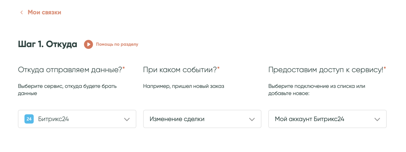 • Выбери сервис, откуда будешь передавать данные — «Битрикс24».