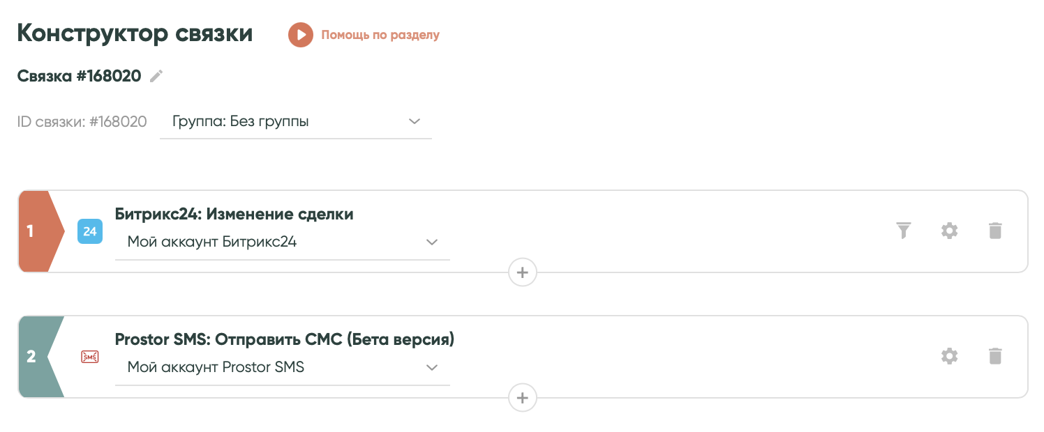 Связка готова. Теперь, когда сделка в «Битрикс24» перейдет в статус «Оплачено», Albato запустит сценарий и отправит сообщение в Prostor SMS и его получит клиент.