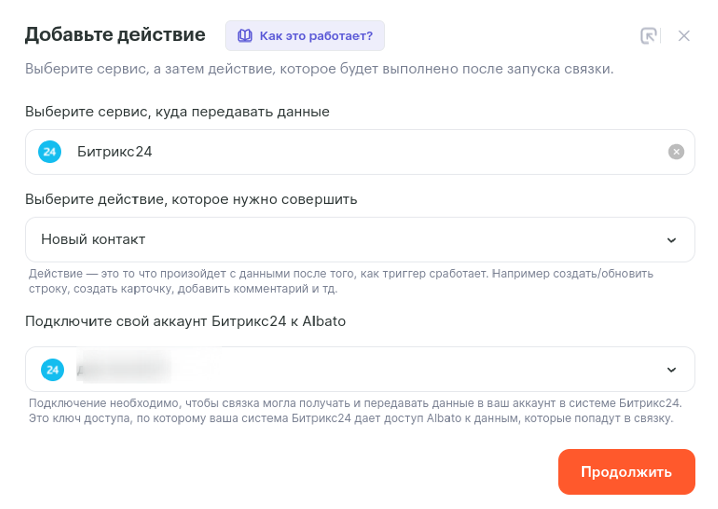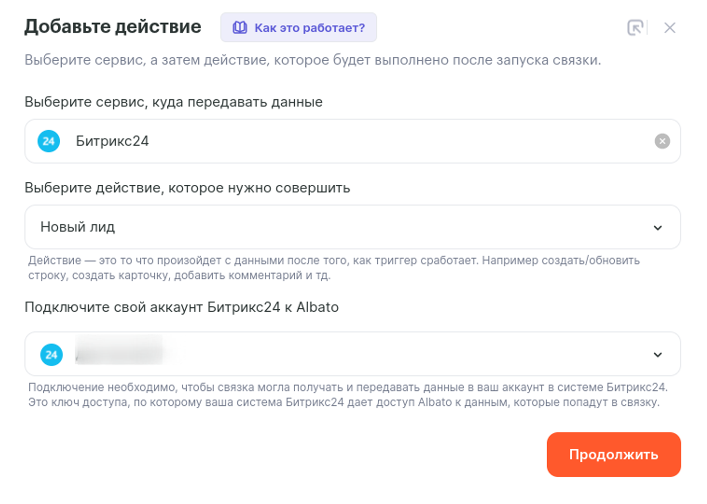 Действия — это то, что делает Albato после запуска связки. Также действия позволяют передавать данные в другие сервисы и системы.