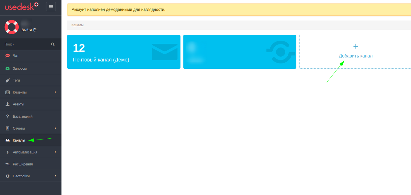 Перейдите в раздел «Каналы» и нажмите «Добавить канал».