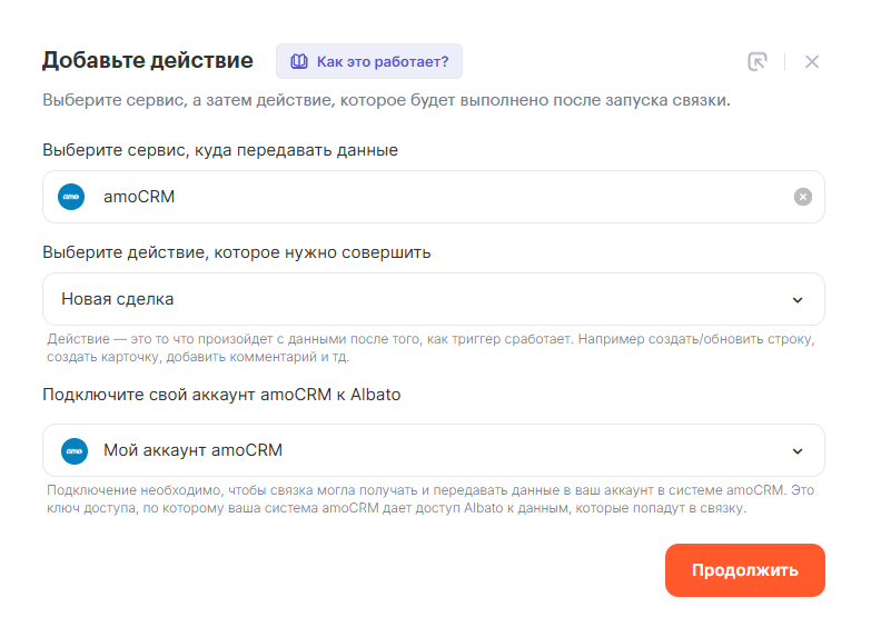 Подключение amoCRM к Albato