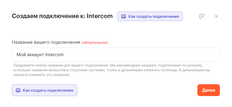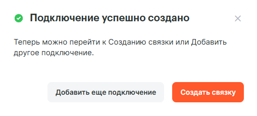 Подключение создано и теперь можно настроить интеграцию.