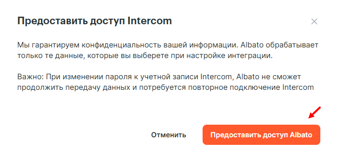 Войдите в свою учетную запись Intercom в новом всплывающем окне.