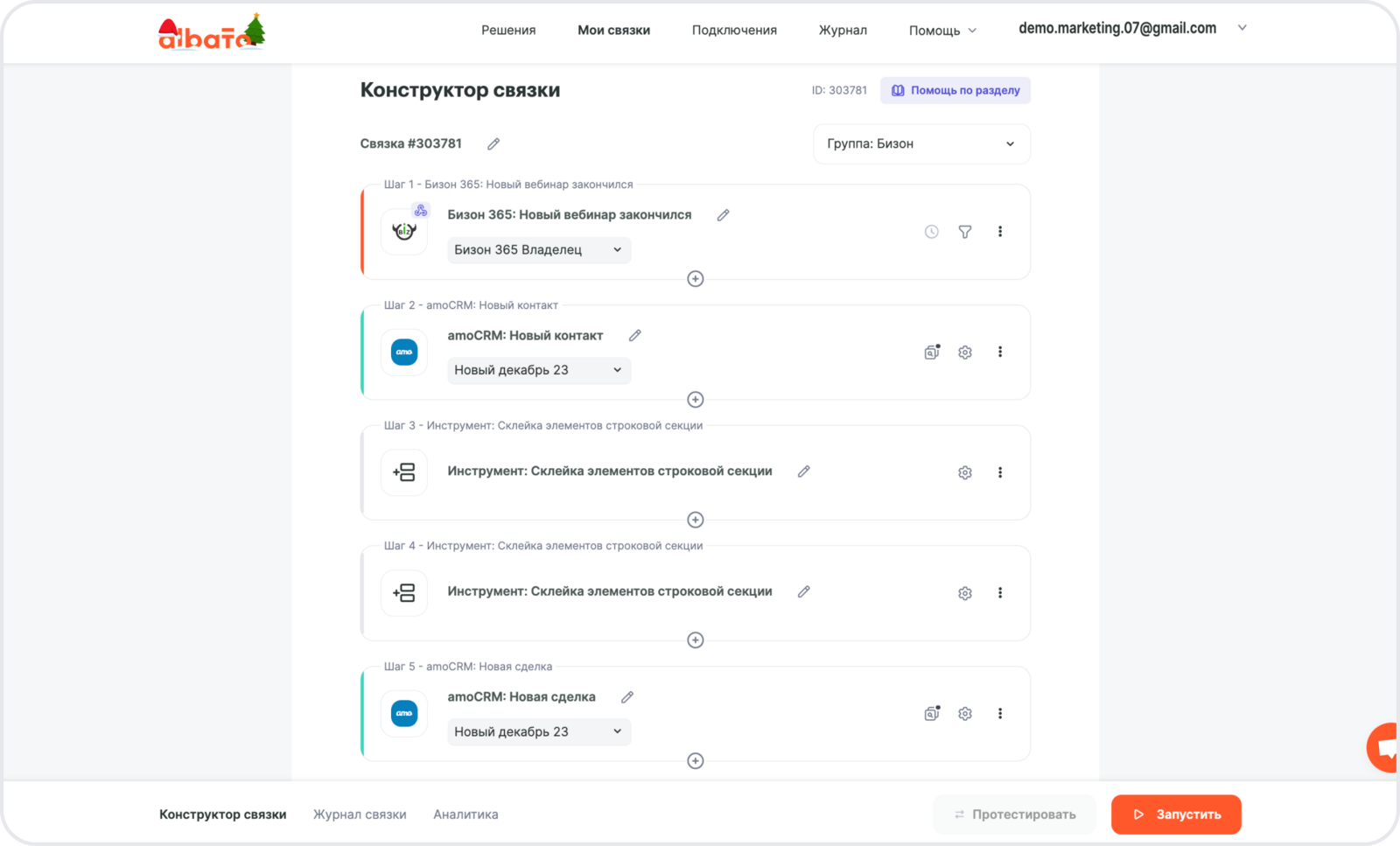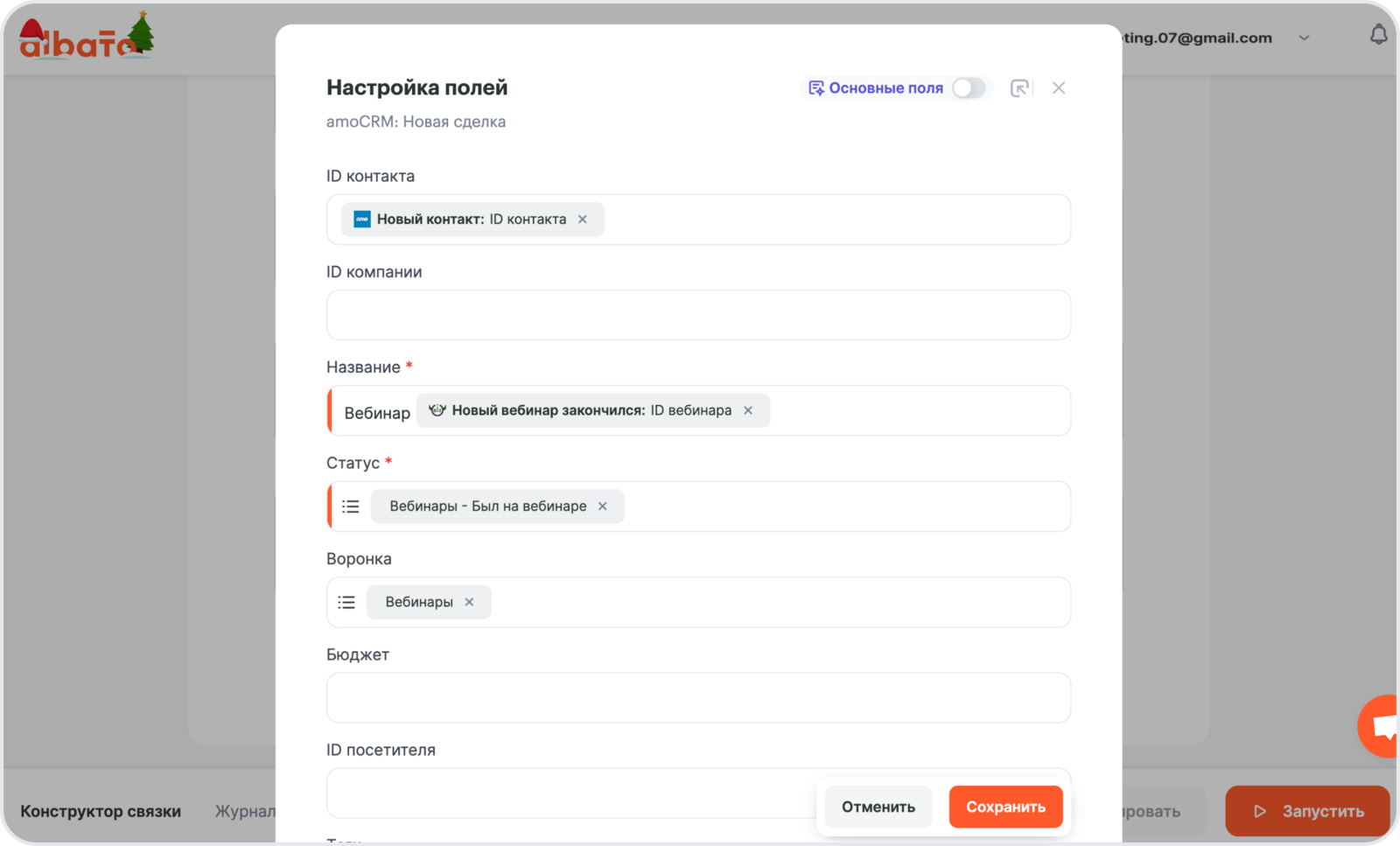 В этой инструкции мы покажем, как настроить интеграцию, которая при получении отчета о вебинаре из Бизон 365 передает данные в amoCRM и создает контакт и сделку.