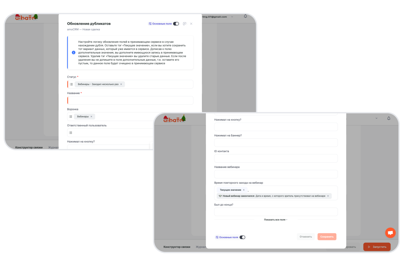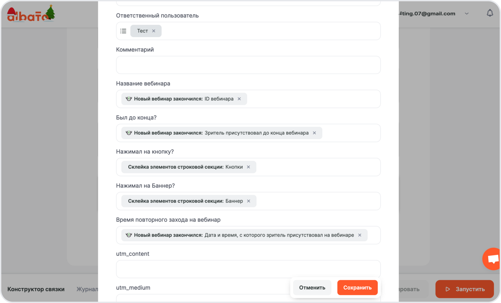 Примечание: с такими данными можно настроить инструмент Роутер, если нужно разбить слушателей вебинара на две воронки/группы: тех кто был до конца и кто вышел раньше, по проверке значения в поле Зритель присутствовал до конца вебинара.