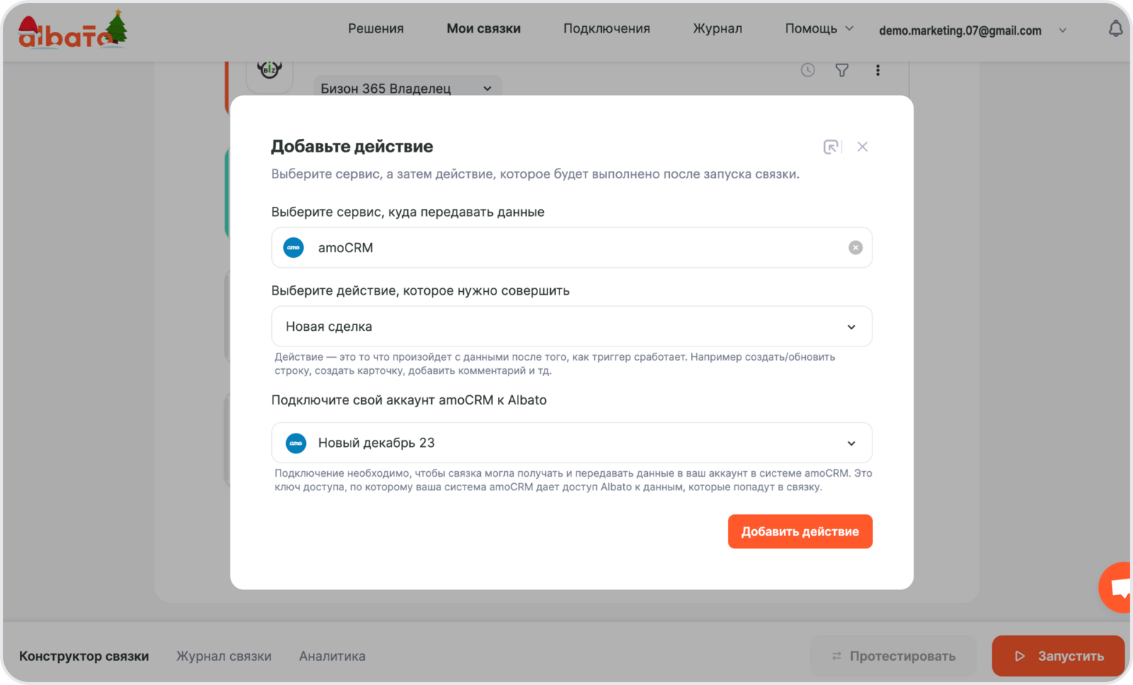 Подключение amoCRM к Albato