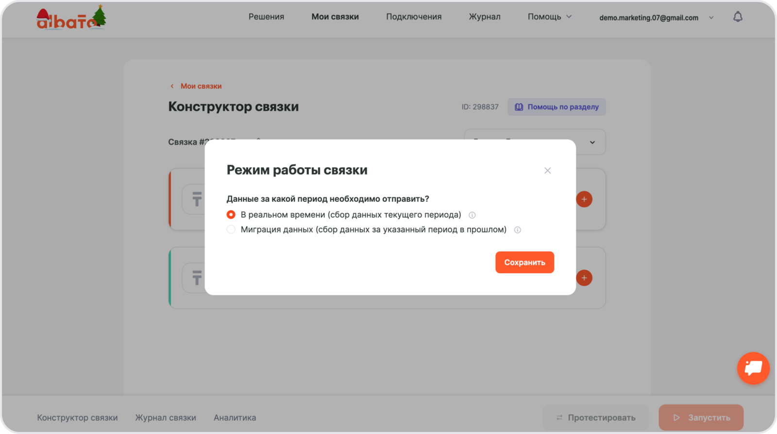 Выбери режим работы связки – в реальном времени.