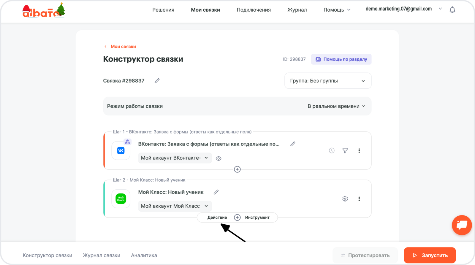 Готово! Связка создана, и теперь её можно активировать.