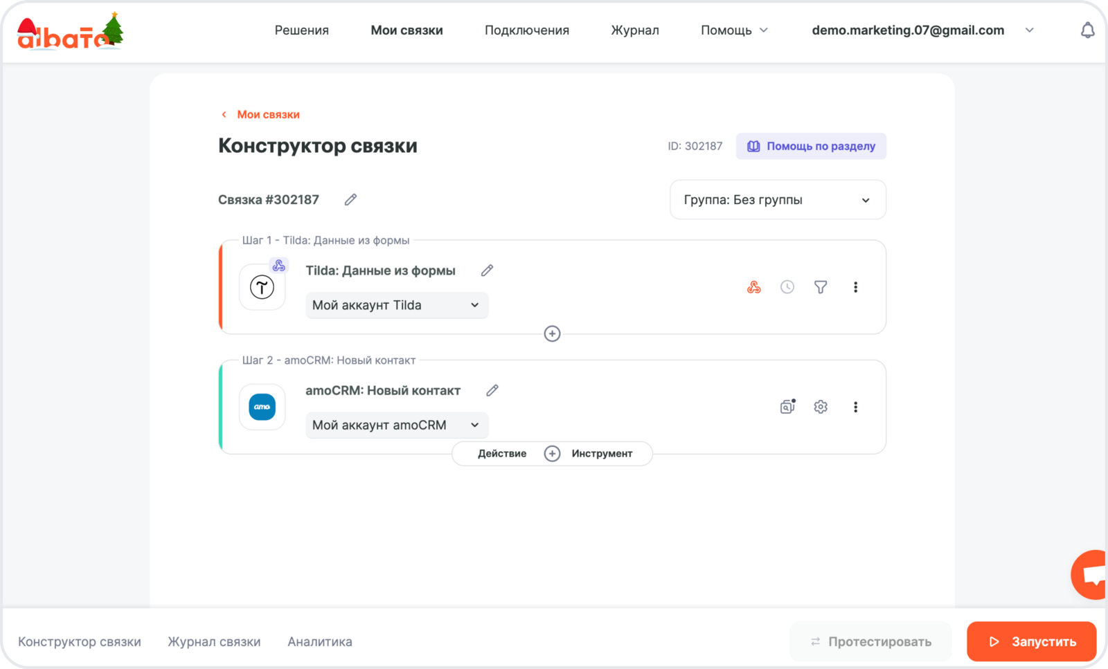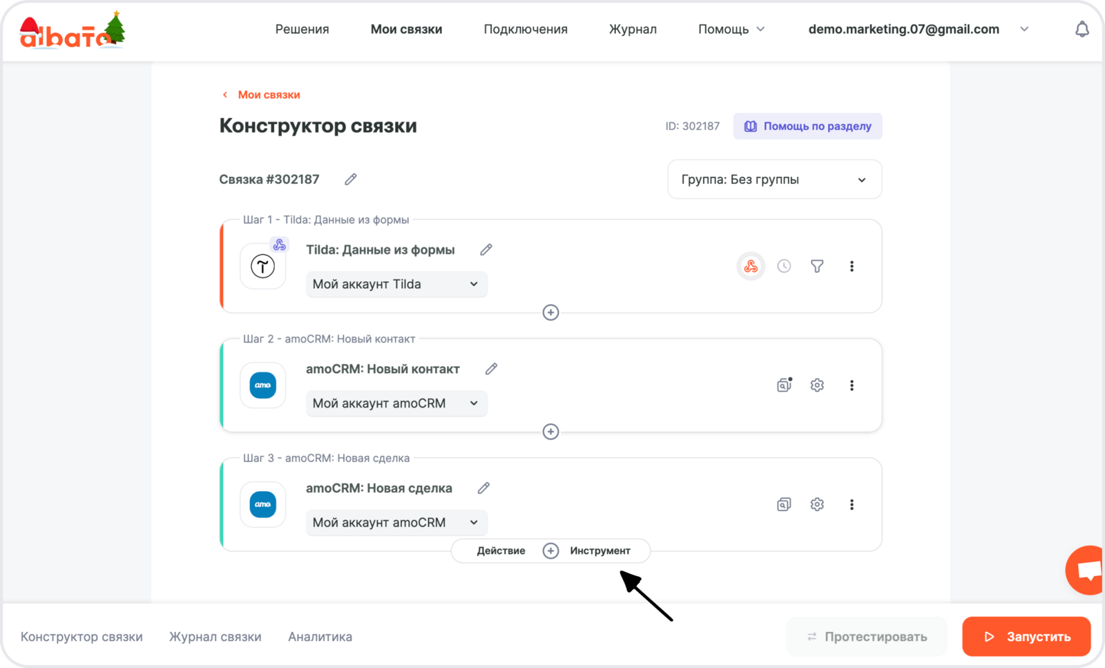 Нажми **Сохранить **и добавь еще один шаг в связку.