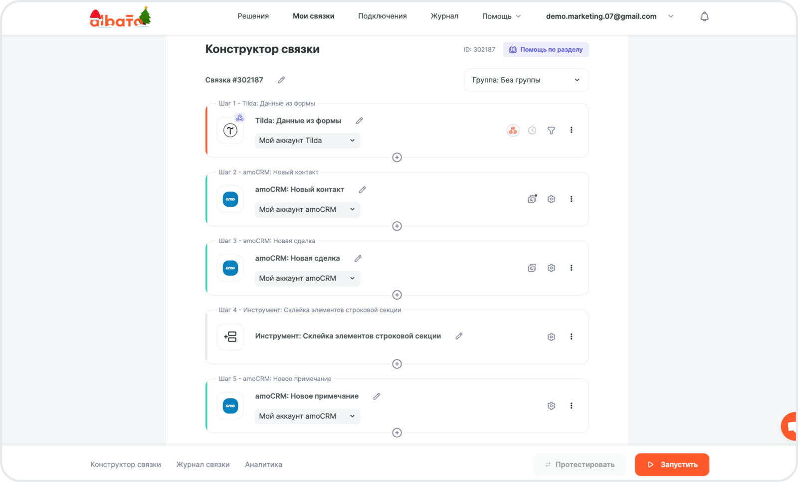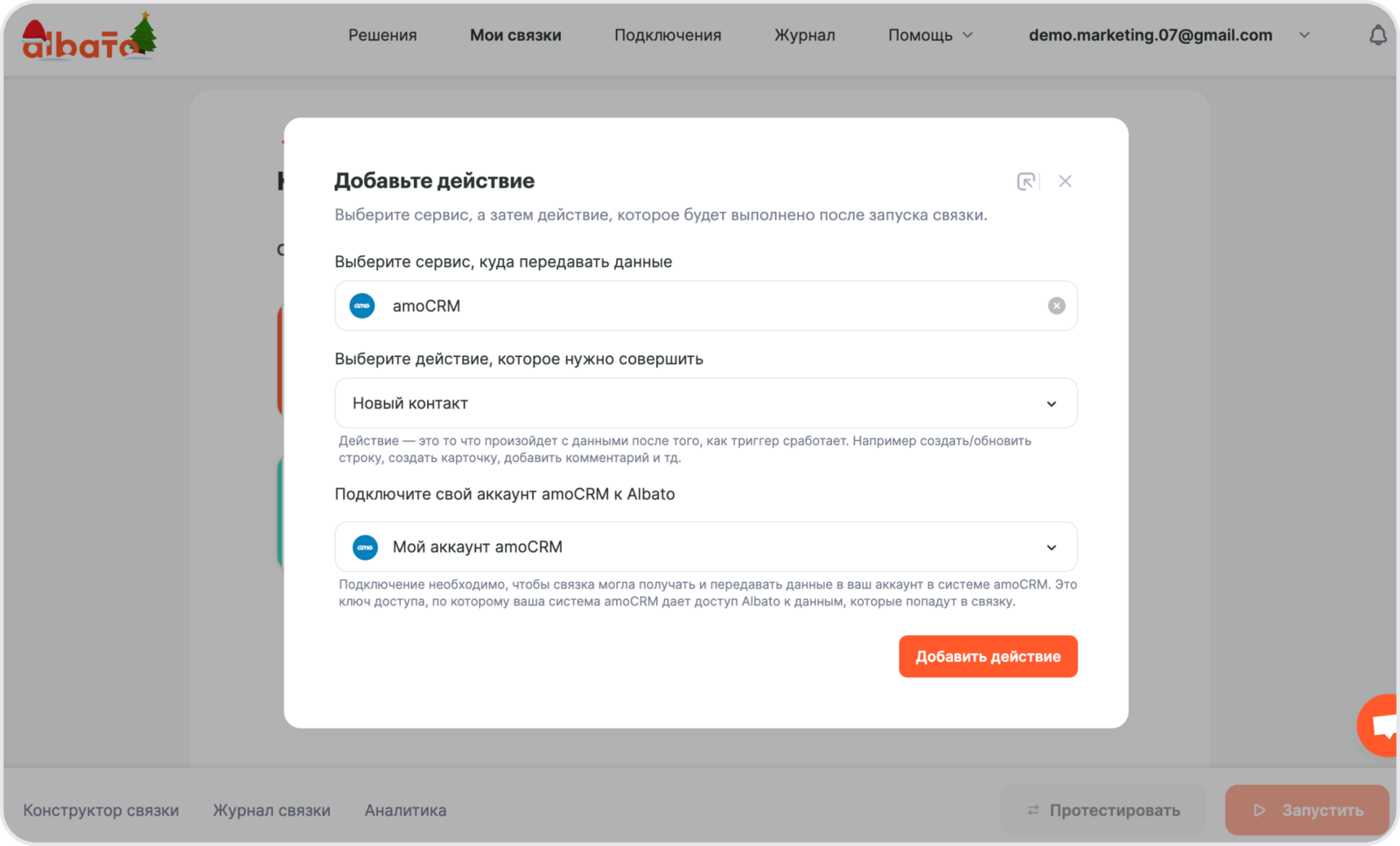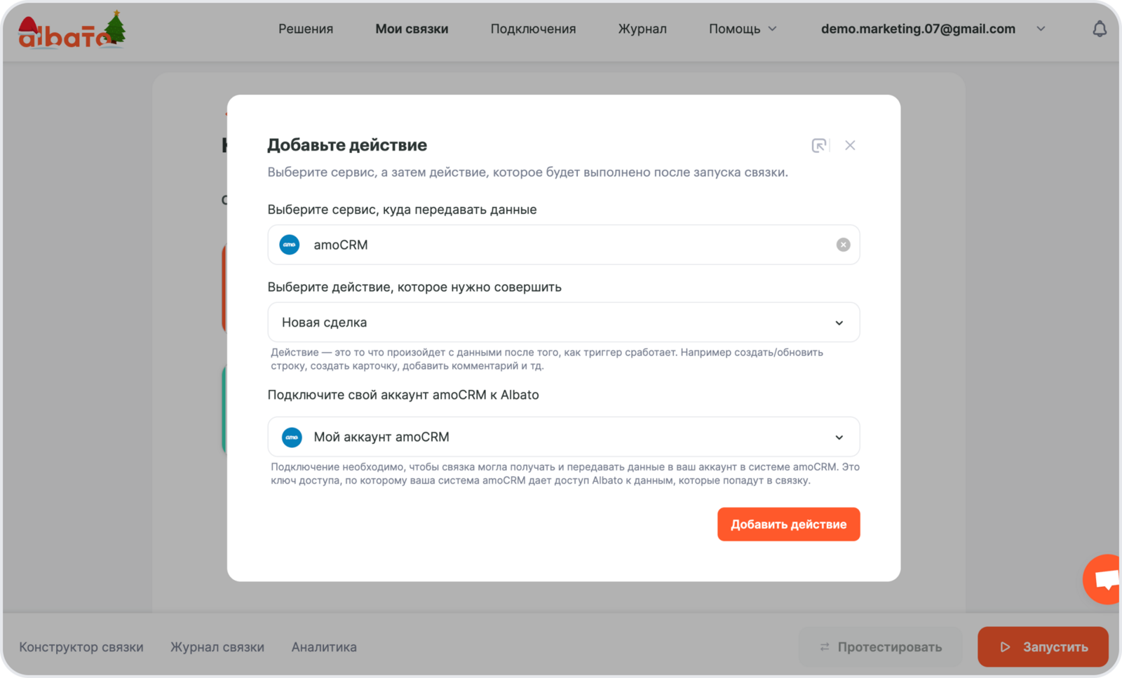 Подключение amoCRM к Albato