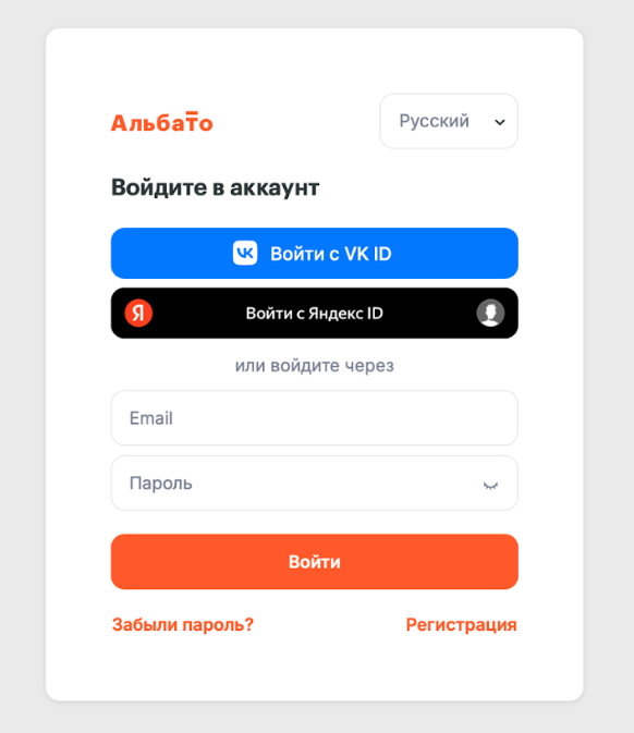 - Войдите в ваш личный кабинет Альбато.
