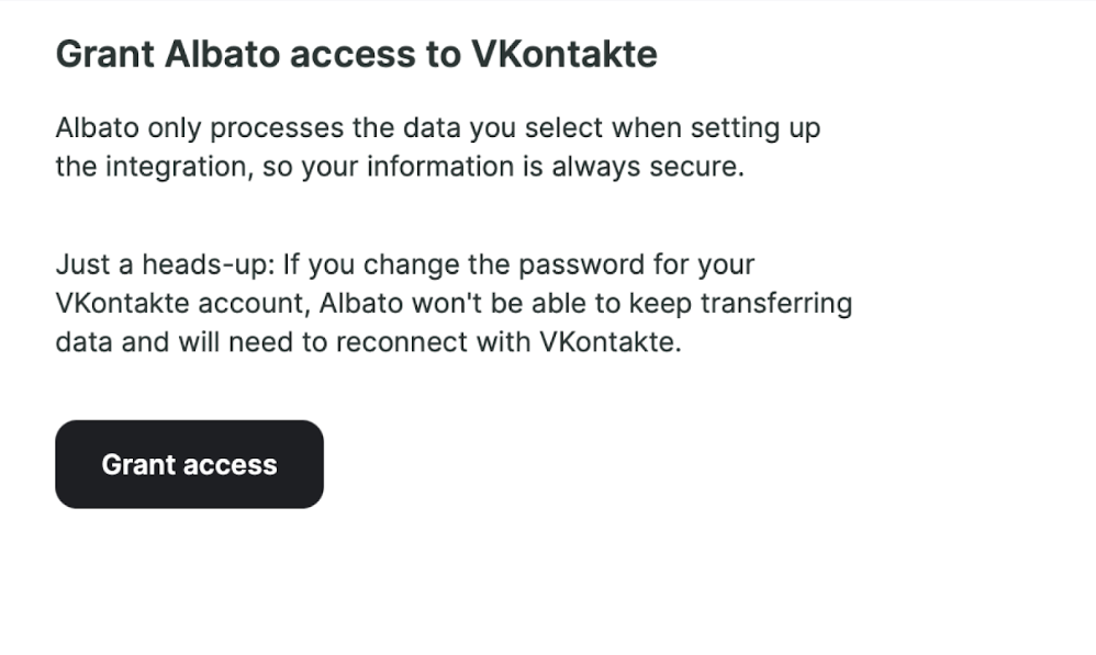 - Клиенту нужно предоставить доступ Альбато.