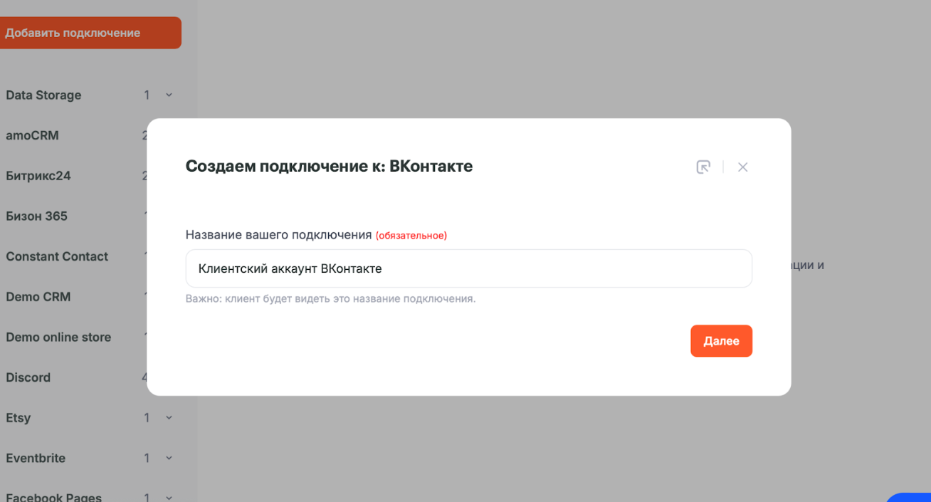 - Укажите название подключения и нажмите Продолжить.