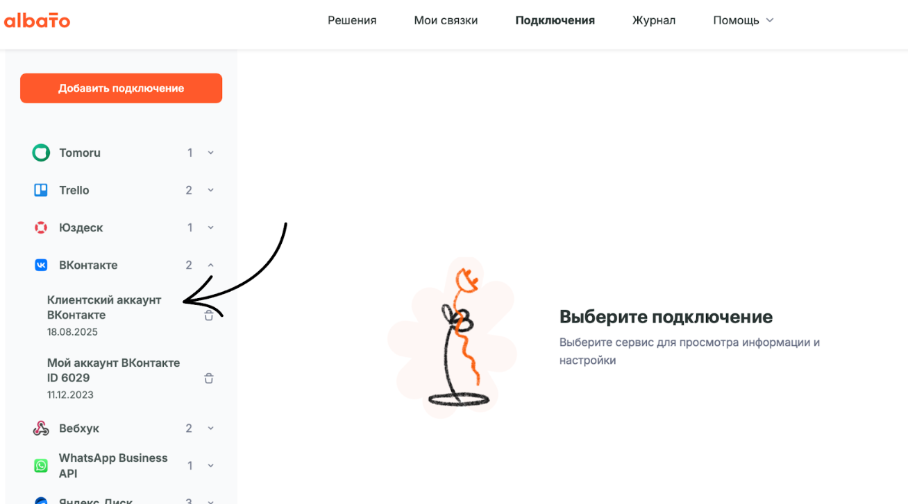 Раньше в Альбато, чтобы подключиться к сервису клиента, агентам нужно было открыть ему доступ в свой кабинет или запросить доступ к его аккаунту. Теперь в разделе Подключения можно создать специальную ссылку. И с ее помощью предоставить доступ в нужное приложение без регистрации в Альбато.