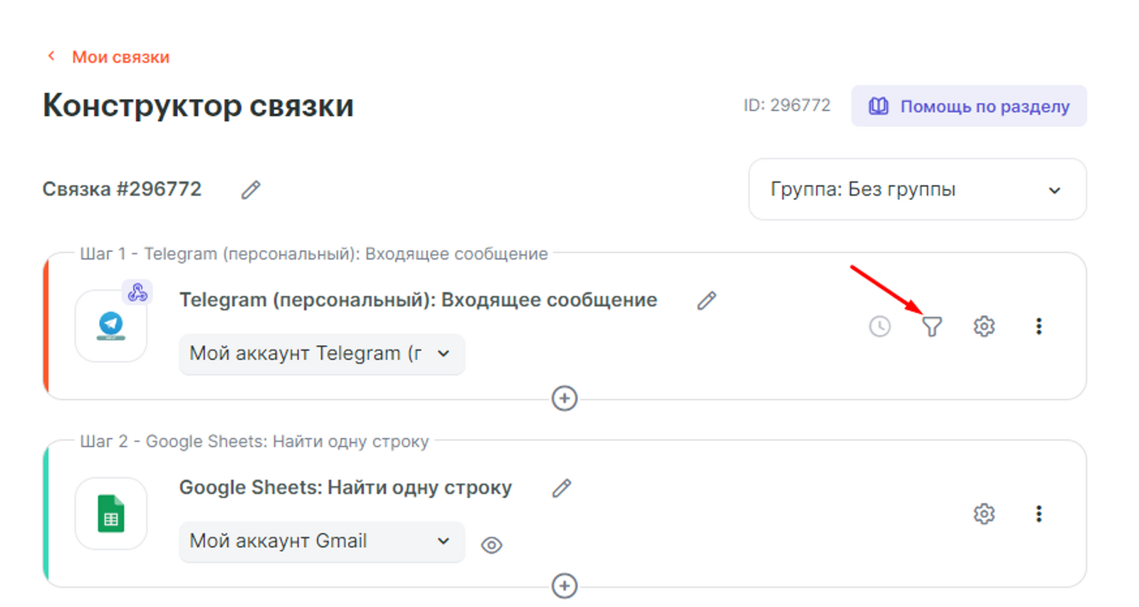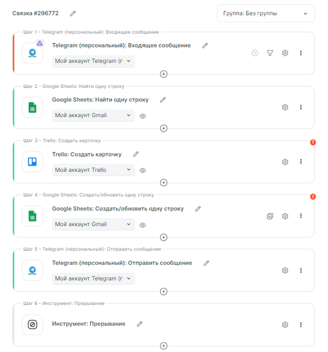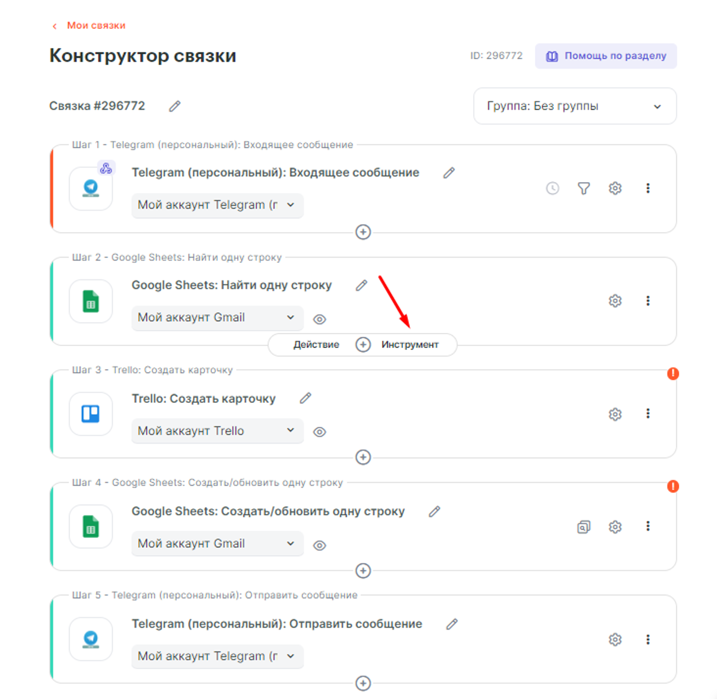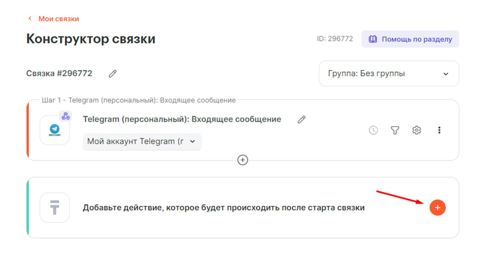 Переходим к настройке второй связки, которая будет отправлять сообщение пользователю в Telegram (персональный) при переносе карточки Trello в другую колонку.