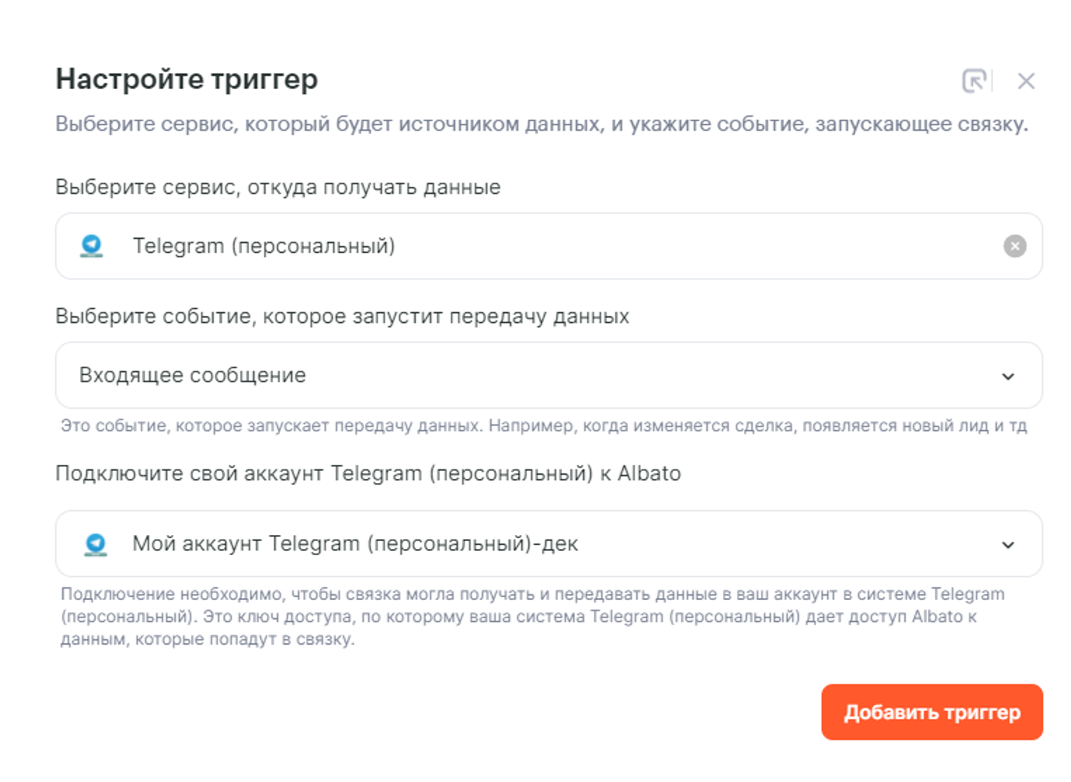В нашем примере это Telegram (персональный):