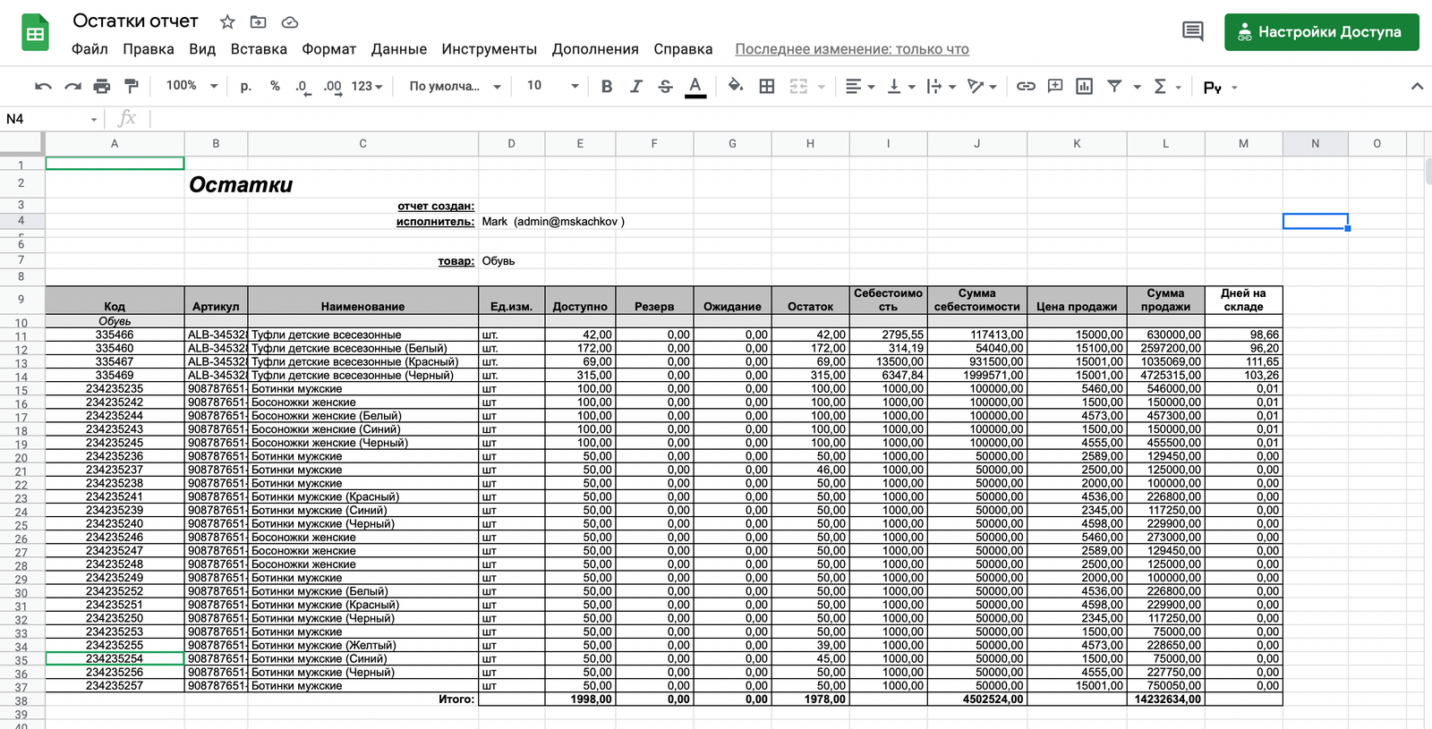 Бывает, что требуется быстро получить актуальные остатки или свежий прайс на товары, не заходя в систему учета. Например, закупщикам, менеджерам по продажам или оптовым покупателям, если нет классического интернет-магазина с карточками товаров. Для таких целей часто используют Google Sheets, чтобы свести нужную информацию в таблицу и открыть к ней доступ всем заинтересованным.