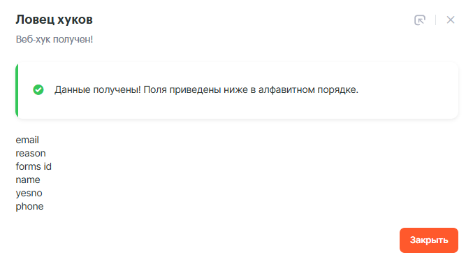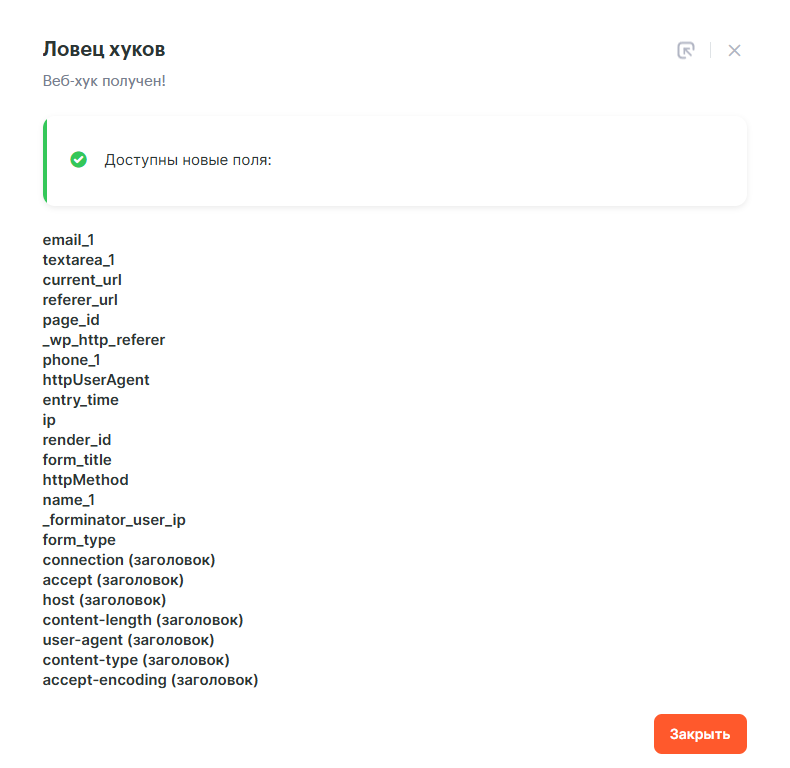 Теперь эти поля можно использовать в следующих шагах связки — например, для передачи данных в CRM или мессенджер.