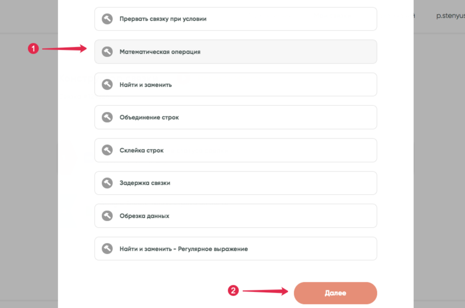 - Создание шага «Математическая операция»
