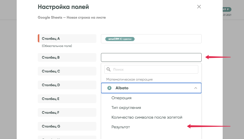 Готово! Теперь вы можете получить два значения от амоСRМ. Если «сумма заказа» равна 5000, а «сумма скидки» равна 100, в Google Таблицы в одно поле будет передаваться значение 4900.
