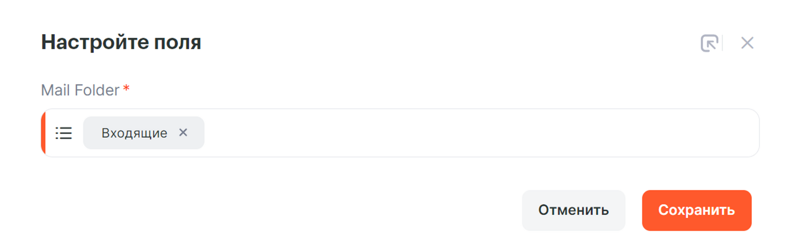В настройке поля выбираем из предложенного списка необходимую папку — Входящие