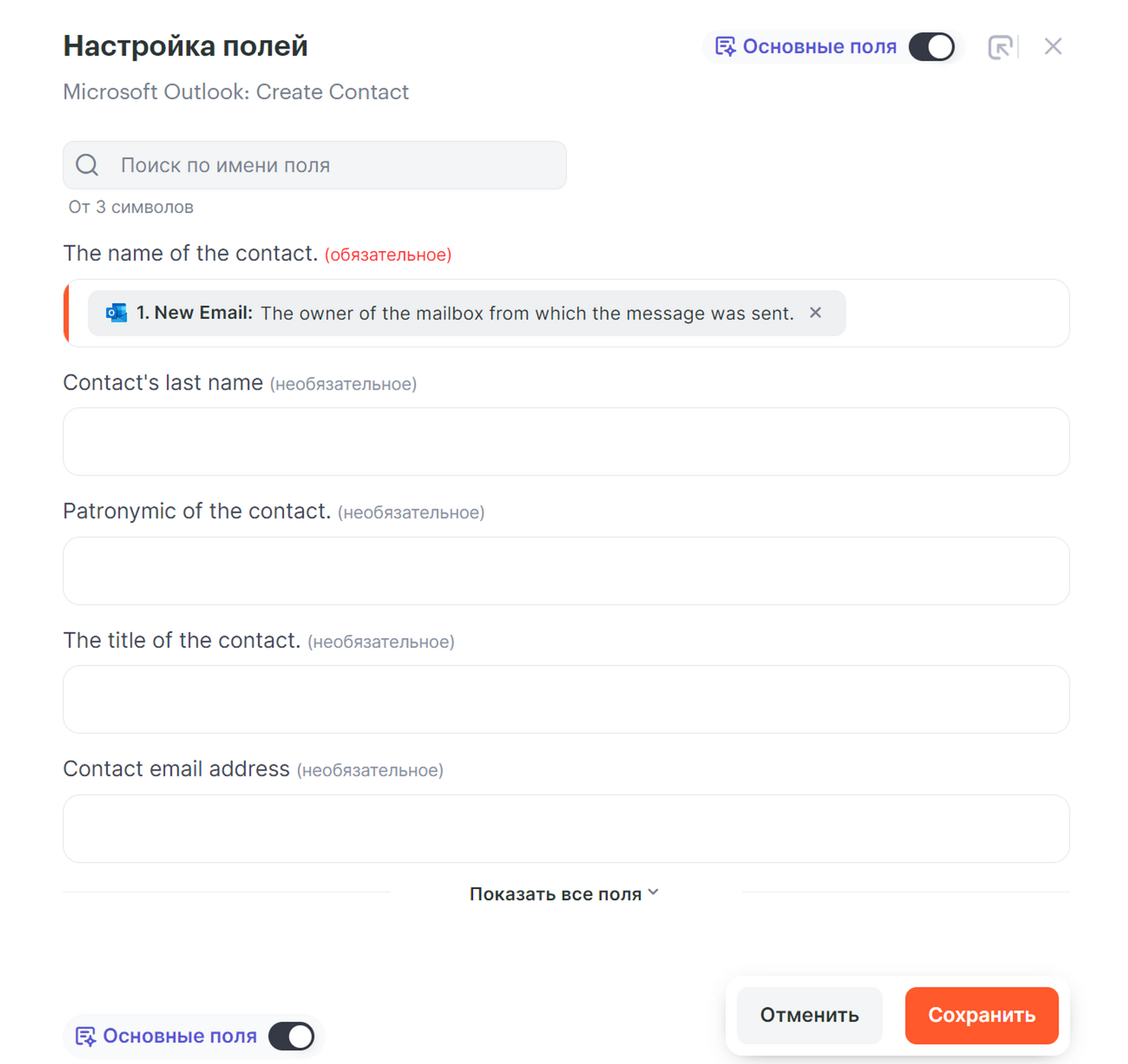 - В поле The name of the contact выбираем The owner of the mailbox from which the message was sent