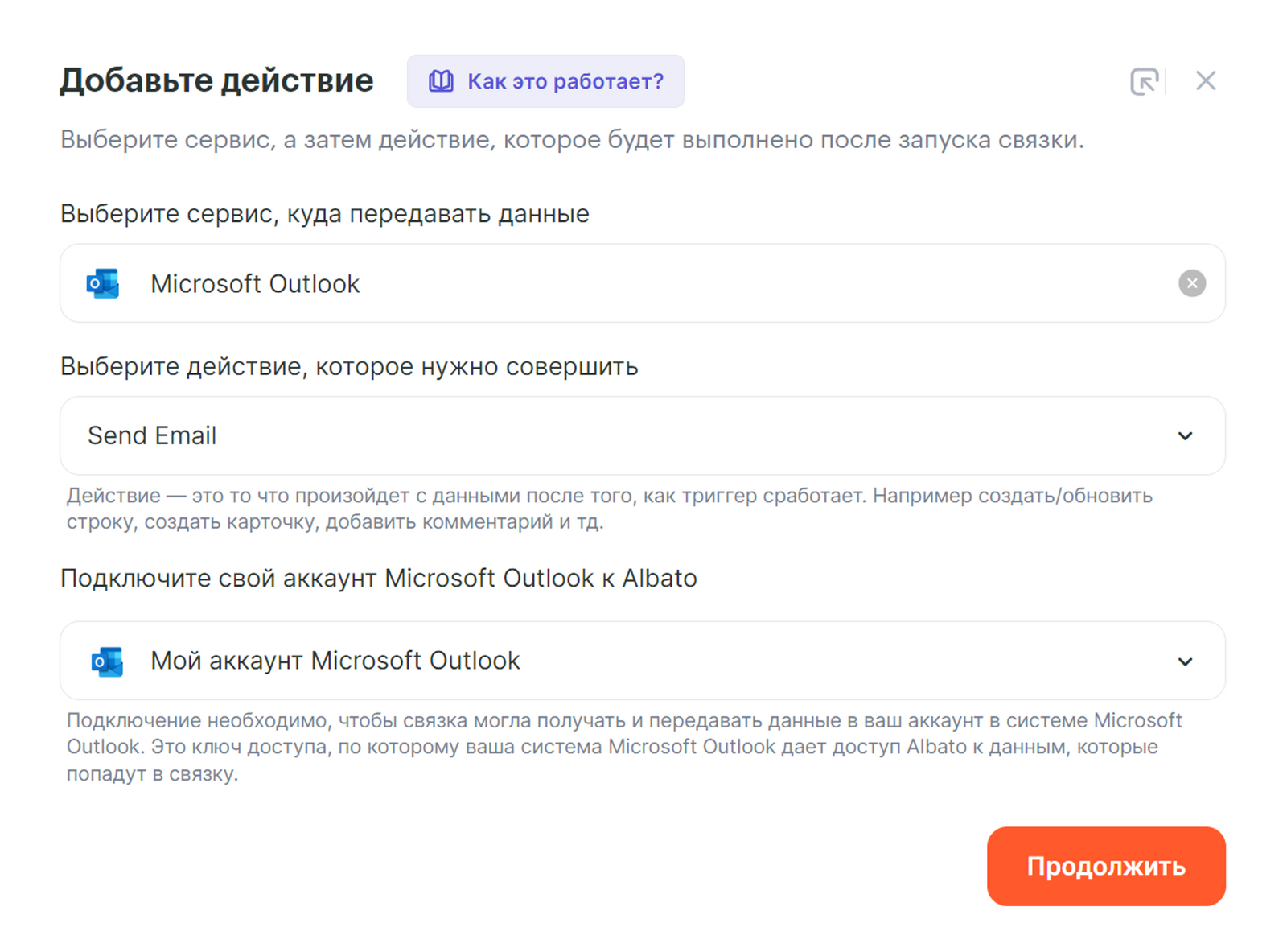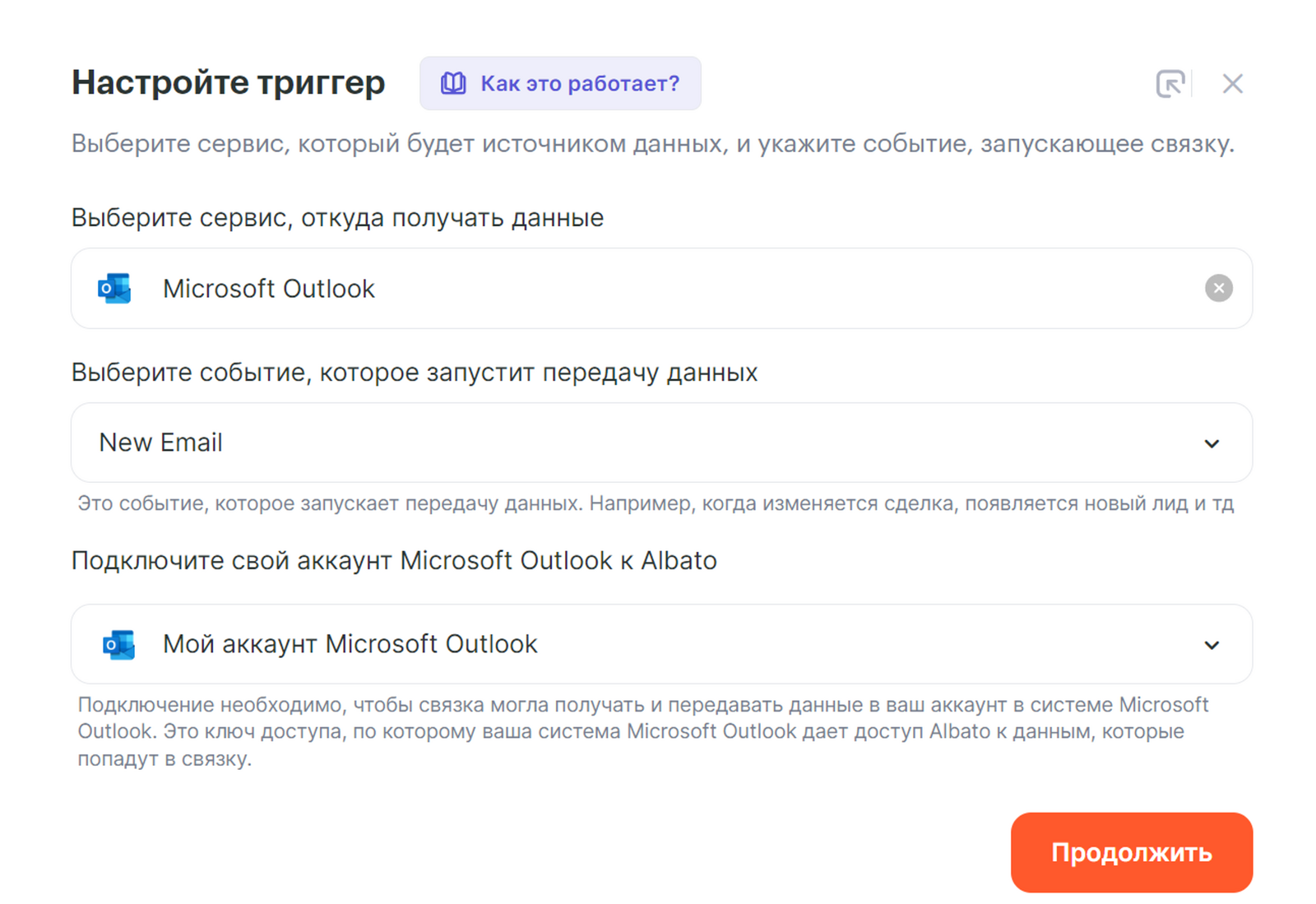 В этой инструкции мы рассмотрим интеграцию Microsoft Outlook и OpenAI с помощью Albato. Это позволит автоматически создавать ответы на письма, поступающие на почту Microsoft Outlook.