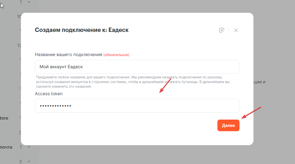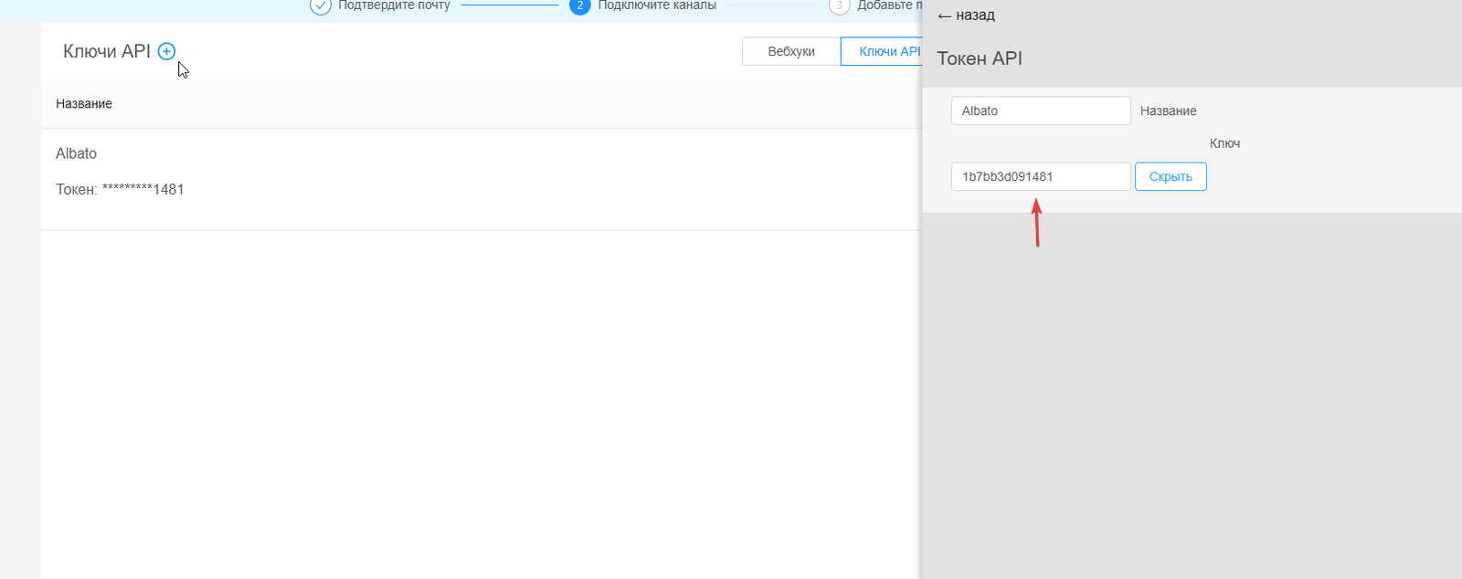 Скопируйте токен и добавьте его в окно подключения в Альбато
