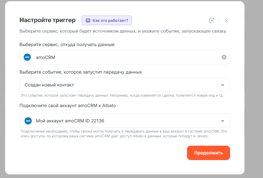 - При каком событии запустится связка — Создан новый контакт.
