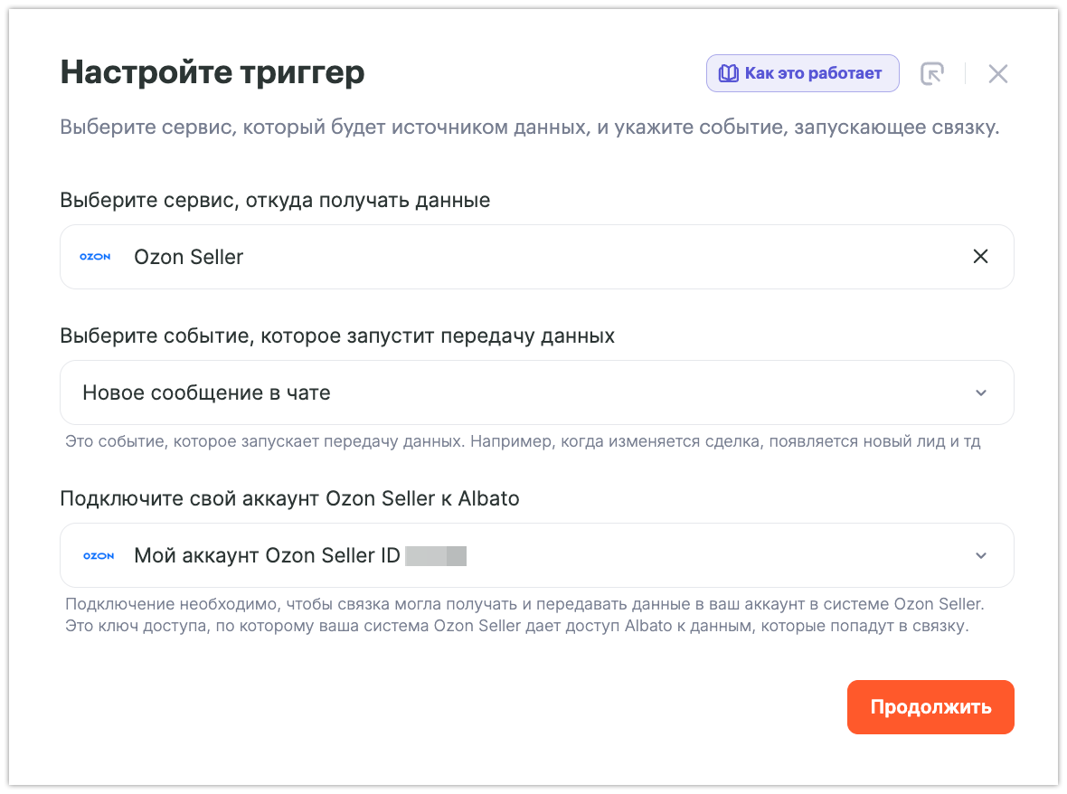 В этой инструкции мы покажем вам, как  настроить интеграцию Ozon Seller и amoCRM с помощью Albato, которая позволяет обмениваться сообщениями в чате Ozon не покидая amoCRM. Также при получении сообщений можно создавать сделки и задачи в amoCRM.