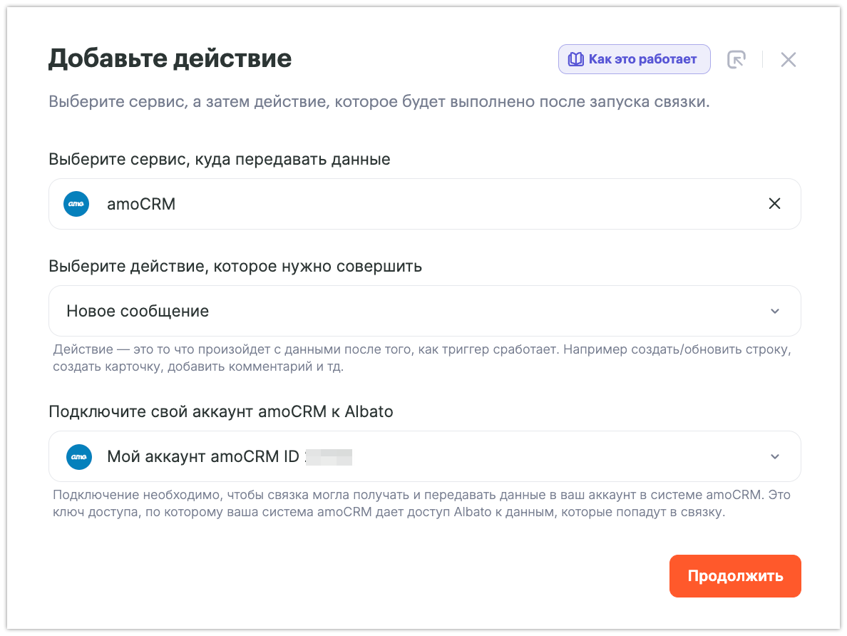 Прочитав инструкцию, ты научишься работать с Albato и сможешь настроить другие действия в amoCRM, например: создание нового контакта, сделки и другие.