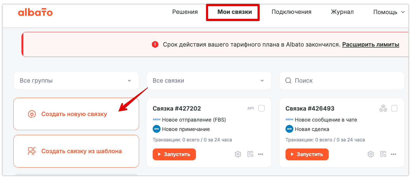 Передите в раздел Мои связки и далее нажмите Создать новую связку. Это первый шаг к автоматизации рабочего процесса.