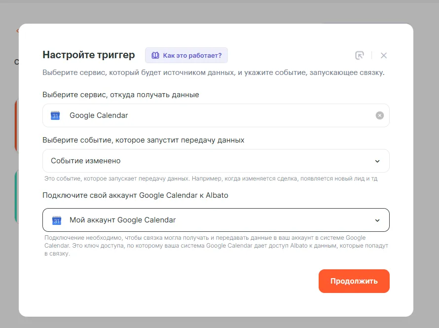 - Откуда нужно передавать данные – Google Calendar