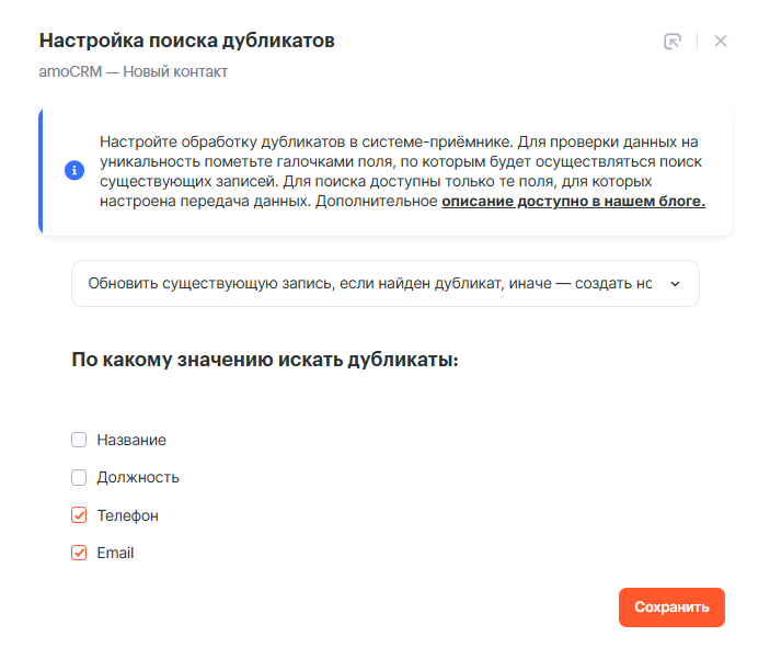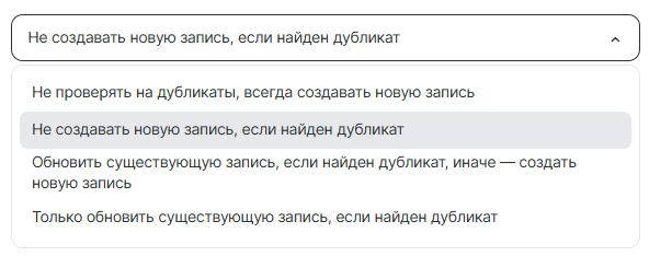 В настройках обработки дубликатов доступно несколько сценариев для работы с повторяющимися записями.