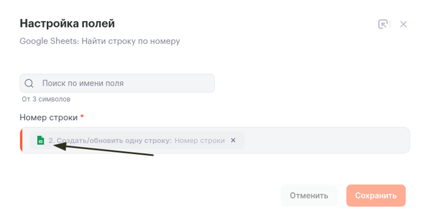 Шаг 4 — Google Sheets: Найти строку по номеру
