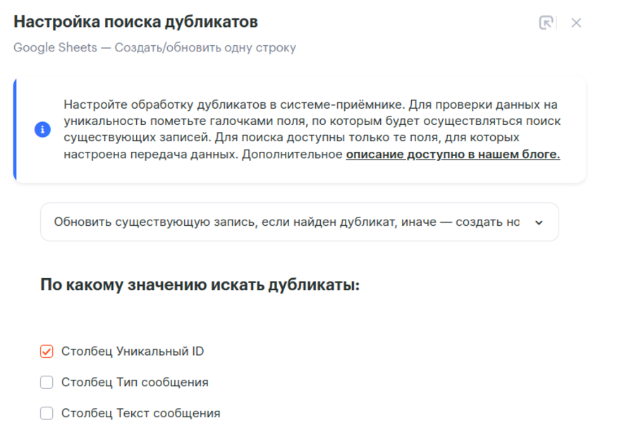 **Шаг 2 **- Google Sheets: Создать/обновить одну строку