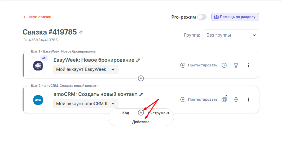 В данной инструкции рассмотрим пример связки между EasyWeek и amoCRM, в которой при новом бронировании в EasyWeek создаётся Контакт и Сделка в amoCRM.
